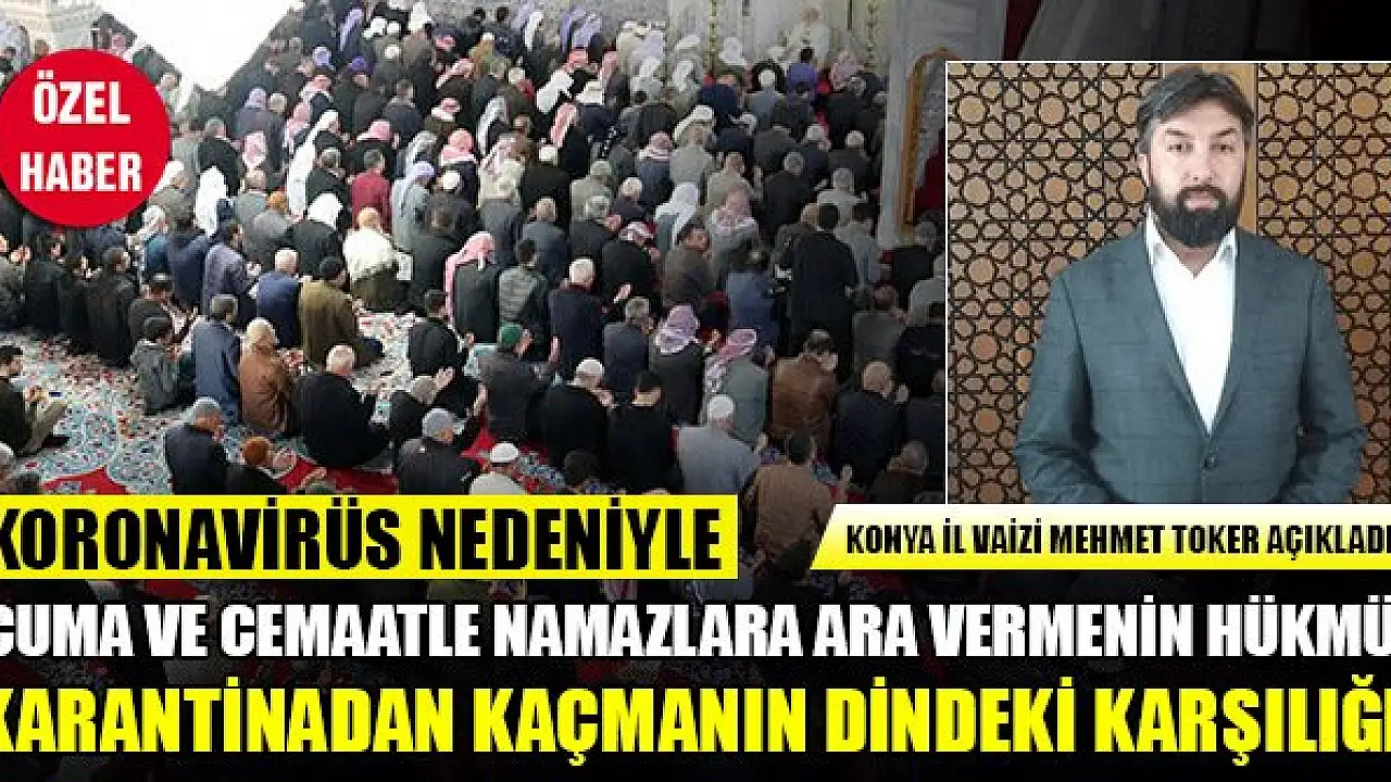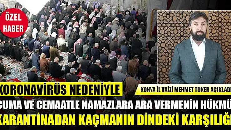 Koronavirüs önlemleri kapsamında, Diyanet İşleri Başkanlığı'nın aldığı, cami ve mescitlerde cemaatle namaza ara verilmesi uygulamasını ayet ve sünnet ekseninde değerlendiren Konya İl Vaizi Mehmet Toker karantina uygulamasının Peygamber Efendimizin tavsiyesi olduğunu belirtti.