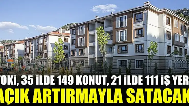 Çevre ve Şehircilik Bakanlığı Toplu Konut İdaresi (TOKİ) Başkanlığı, 35 ilde 149 konut ile 21 ilde 111 iş yerini 16-17 Haziran'da açık artırma yöntemiyle satışa sunacak.