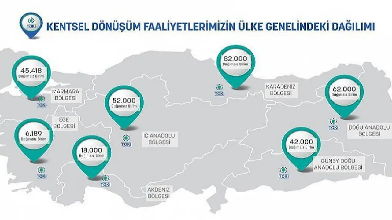 TOKİ Başkanı Ergün Turan, 54 il ve 118 ilçede toplam 183 proje ve 258 bin 49 konutluk kentsel dönüşüm başlattıklarını söyleyerek, bu projelerin 53'ünün tamamlandığını söyledi.