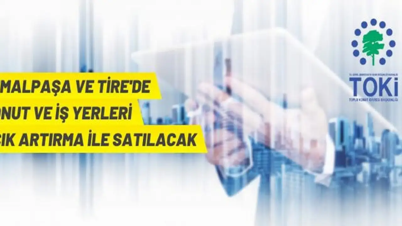 Çevre, Şehircilik ve İklim Değişikliği Bakanlığı Toplu Konut İdaresi Başkanlığı (TOKİ), İzmir'in Kemalpaşa ve Tire ilçelerinde 1 adet konut ve 22 adet iş yerini açık artırma ile satışa çıkardı.