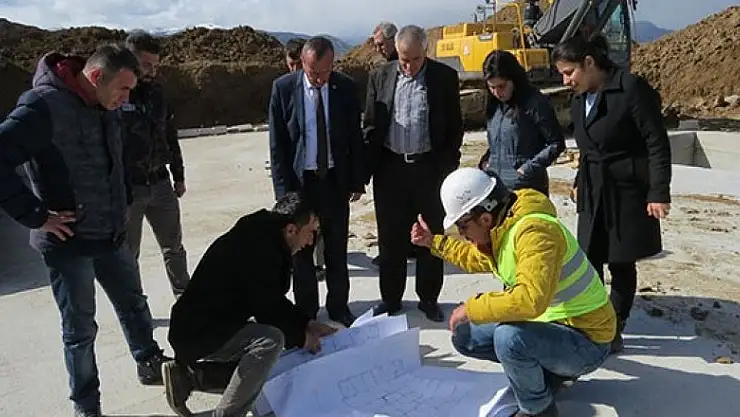 Şantiye Şefi Tuncer Bıçakçı’dan çalışmalar hakkında bilgi alan heyet, inşaat alanını gezdi.