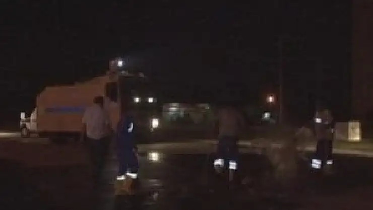 Antalya'da, eylemcilerin kurdukları barikatları yakması nedeniyle Hastane Caddesinde biriken çöpleri temizlik ekipleri TOMA korumasıyla yaptı.