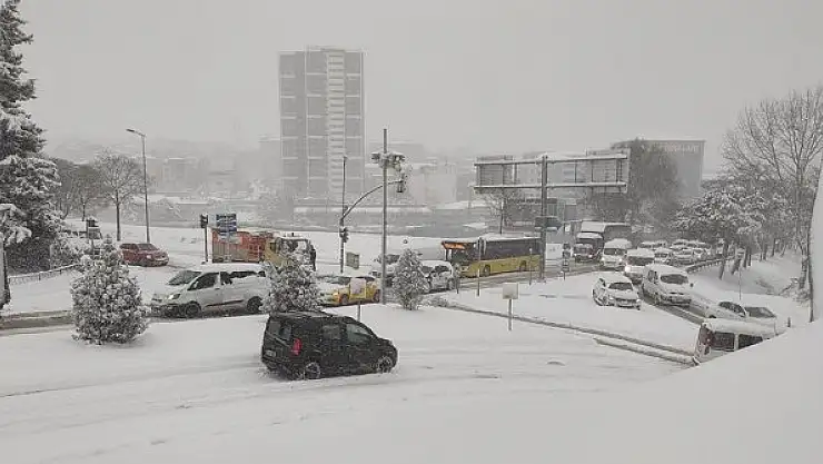 İstanbul'da sabah saatlerinde şiddetini artıran kar yağışı nedeniyle kentin birçok noktasında İETT otobüsleri ile özel araçlar karla kaplanan yollarda ilerleyemedi