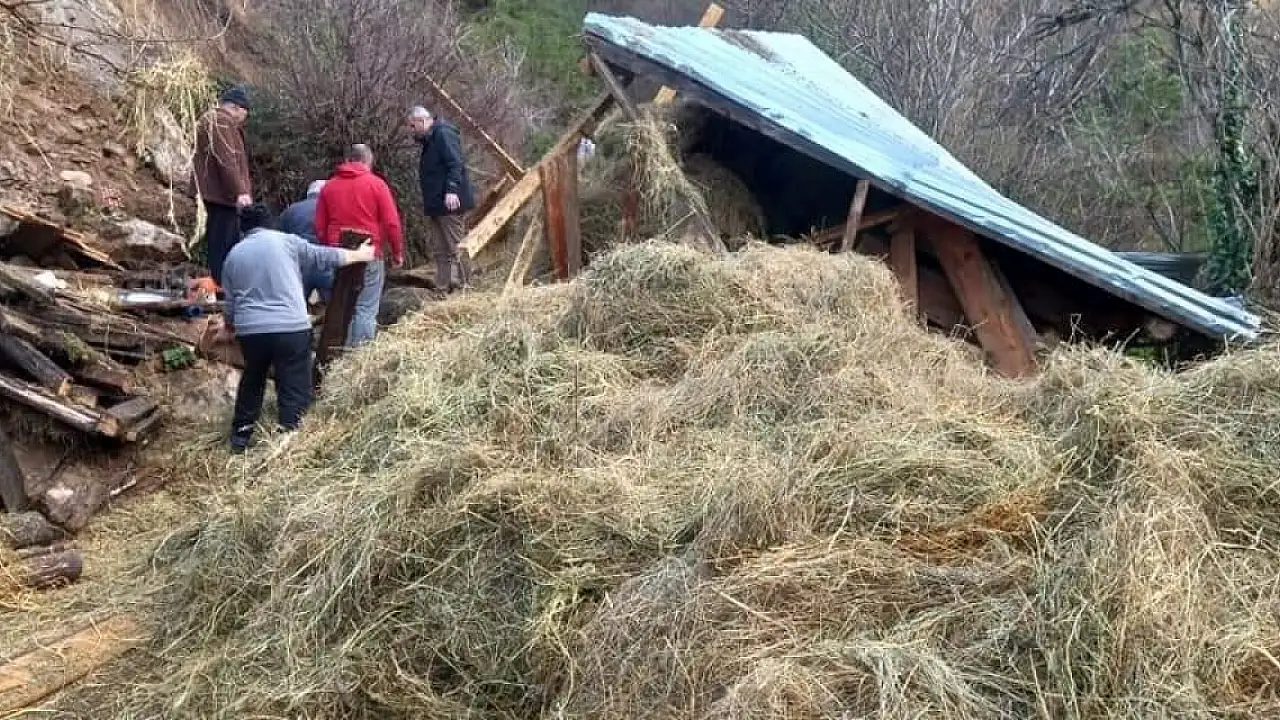 Toprak kayması sonucu ahır çöktü: 2 hayvan telef oldu