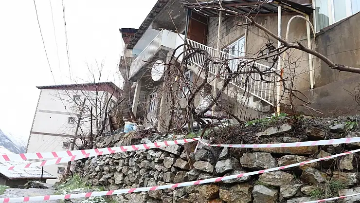 HAKKARİ'de, etkili olan yağışlar sonrası, yumuşayan zeminde toprak kayması meydana geldi. İstinat duvarının çöktüğü bölgede tedbir amaçlı tahliye edilen 3 evin kapısı mühürlendi.
