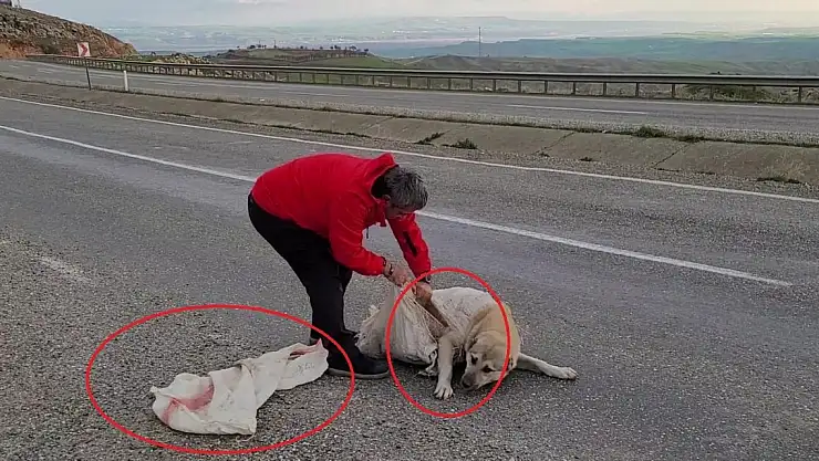 Diyarbakır'da ağzı bağlı torba içinde karayolu kenarında ölüme terk edilen köpek, bir vatandaşın fark etmesiyle kurtarıldı.