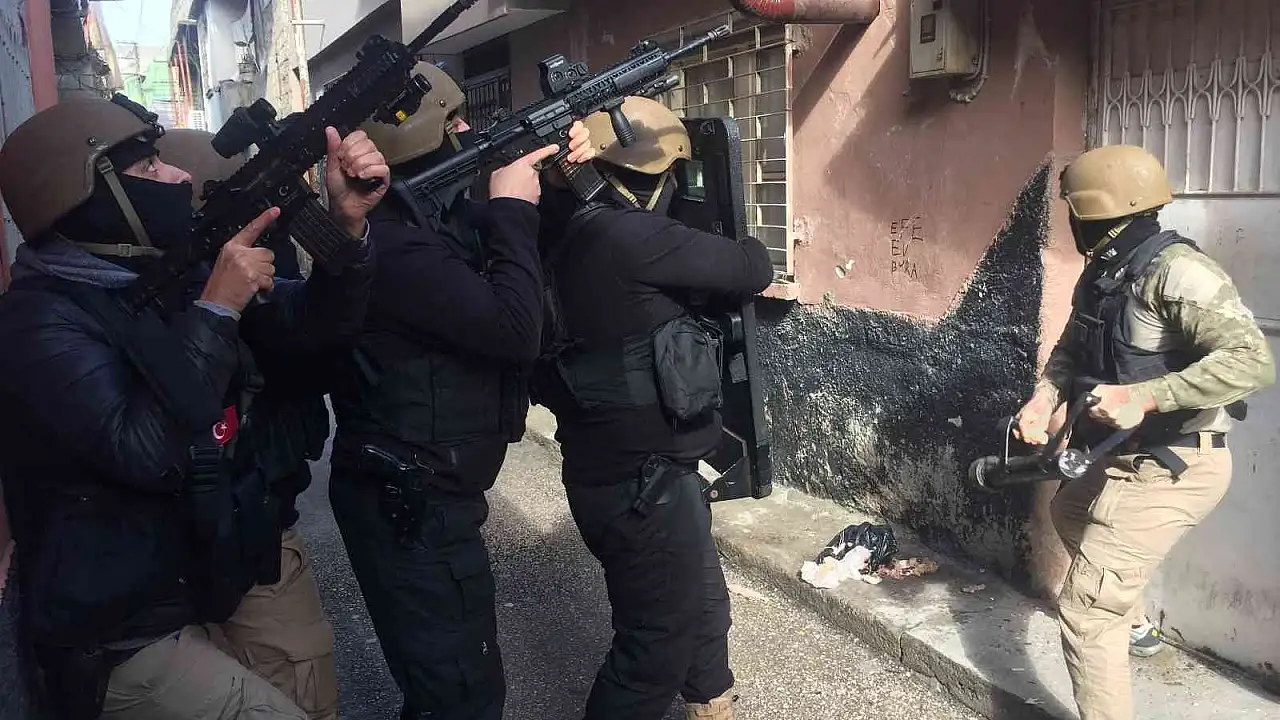 Şüphelilerin yakalanması için belirlenen 11 ayrı adrese gündüz vakti terör polislerinin operasyon timi desteğiyle eş zamanlı baskın yapıldı. Ekipler, demir kapılarını koçbaşlarıyla açarak girdikleri evlerde şüphelileri etkisiz hale getirdi. Bu sırada operasyon kapsamında abluka altına alınan sokaklarda uzun namlulu silahlarla güvenlik önlemi alan polisler ise elleri tetikte bekledi.