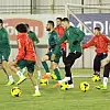 İdman öncesi birbirleriyle şakalaşan futbolcuların neşeli olduğu gözlendi.