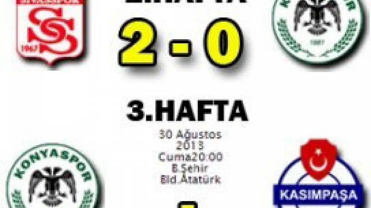 Torku Konyaspor Sivas'ta Sivasspor'a 55. ve 66.dakikada yediği gollerle 2 - 0 mağlup oldu