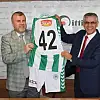 Yeşil-beyazlı kulübün başkanı Ahmet Şan, imza törenin ardından İttifak Holding Yönetim Kurulu Başkan Vekili ve grubun CEO’su olan Tahir Atila’ya forma hediye etti.