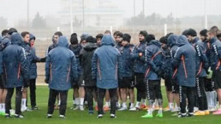 Belek Turizm Bölgesi'nde kamp yaptıkları otelin sahasında teknik direktör Aykut Kocaman, antrenman öncesinde futbolcularla kısa bir toplantı yaptı.
