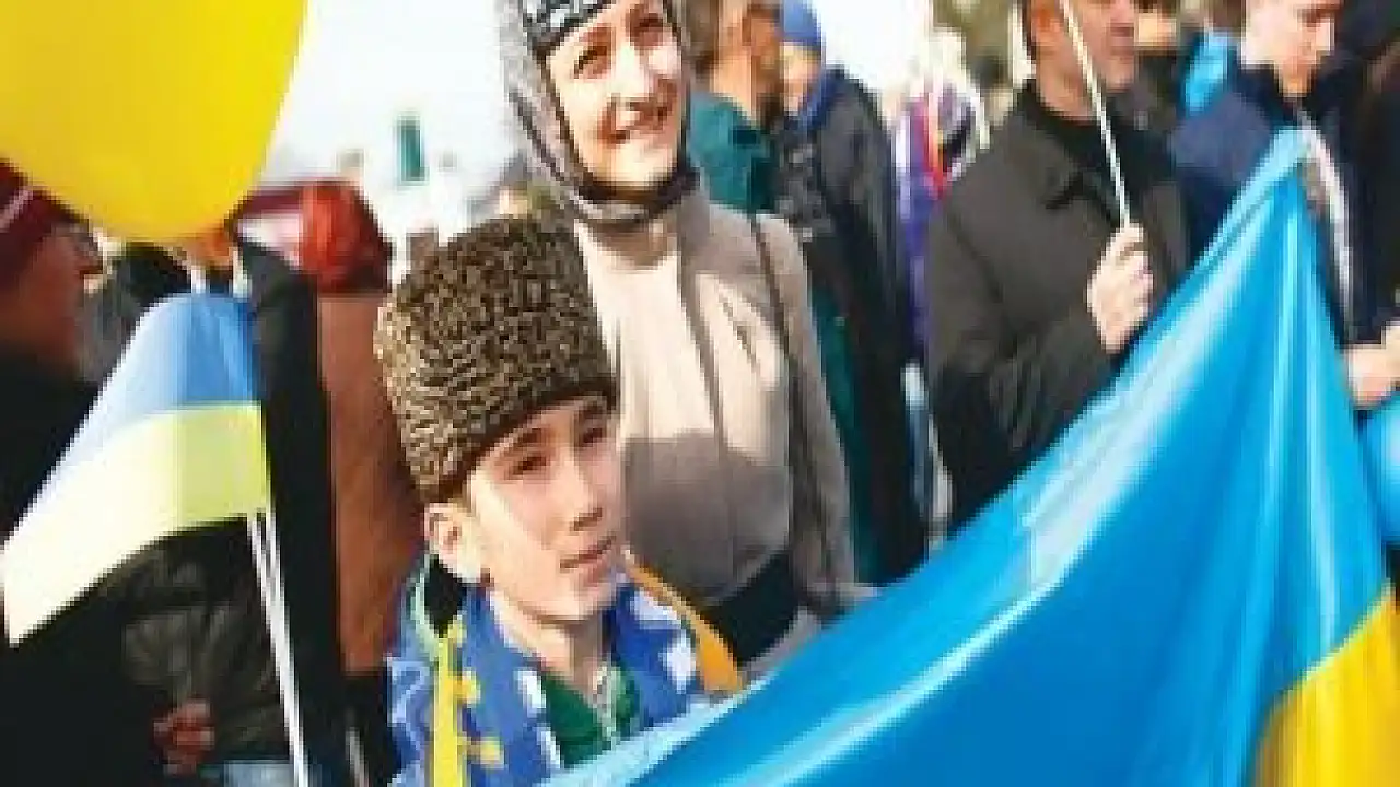 Tatarlar Ukrayna bayraklarıyla yürüdü