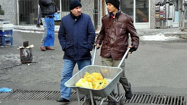 Haftanın her günü soğuk havaya rağmen kentte kurulan semt pazarlarında müşterilerin poşetlerini, tornet tekeri takılı el arabasıyla taşıyarak para kazanan Lütfullah, ailenin bütün yükünü küçük yaşına rağmen üzerinde taşıyor.