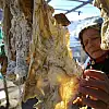 "Hayvan kesildikten sonra kıymalık yerini kavurmak için, kemikli bölgelerini de kurutmak için ayırırız. Bu ayırdığımız kemikli eti bir gün tuzda bekletiriz. Ondan sonra değnek ve iplerle balkona asarız. Orada kuruduktan sonra buzdolabımıza atarız. Sonra yemek pişireceğimizde çıkarır, yemekle birlikte pişirir yeriz. İster nohutla fasulyeyle, ister tarhanayla veya başka yemekle, hangisiyle olursa çok güzel lezzet verir."