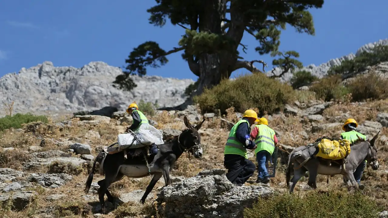 Torosların dağ köyündeki su çalışması için katır ve eşekler kiralandı