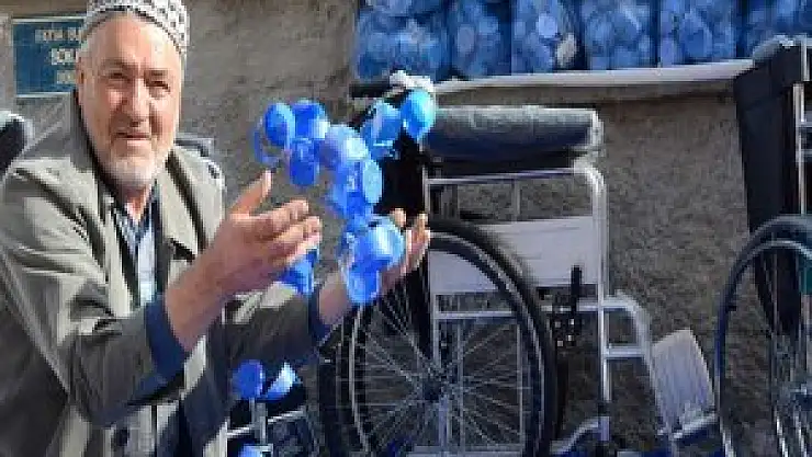 Eskişehir'de, 9 yıldır topladıkları yaklaşık 300 milyon mavi kapak ile engelli vatandaşlara umut ışığı olmaya devam eden 70 yaşındaki Halit Aydoğan ve torunu, 5 tekerlekli sandalyeyi daha teslim aldı.