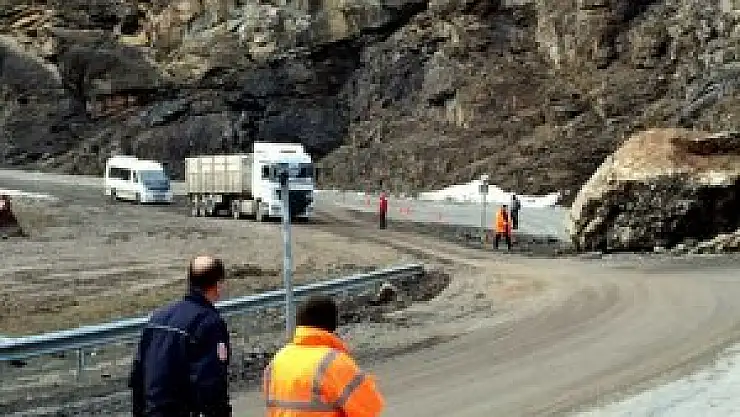 Doğu Karadeniz'i Doğu Anadolu'ya bağlayan en önemli güzergahda yer alan Trabzon-Gümüşhane karayolu üzerindeki Zigana Dağı'nda 100 tonluk dev kaya yola düştü.