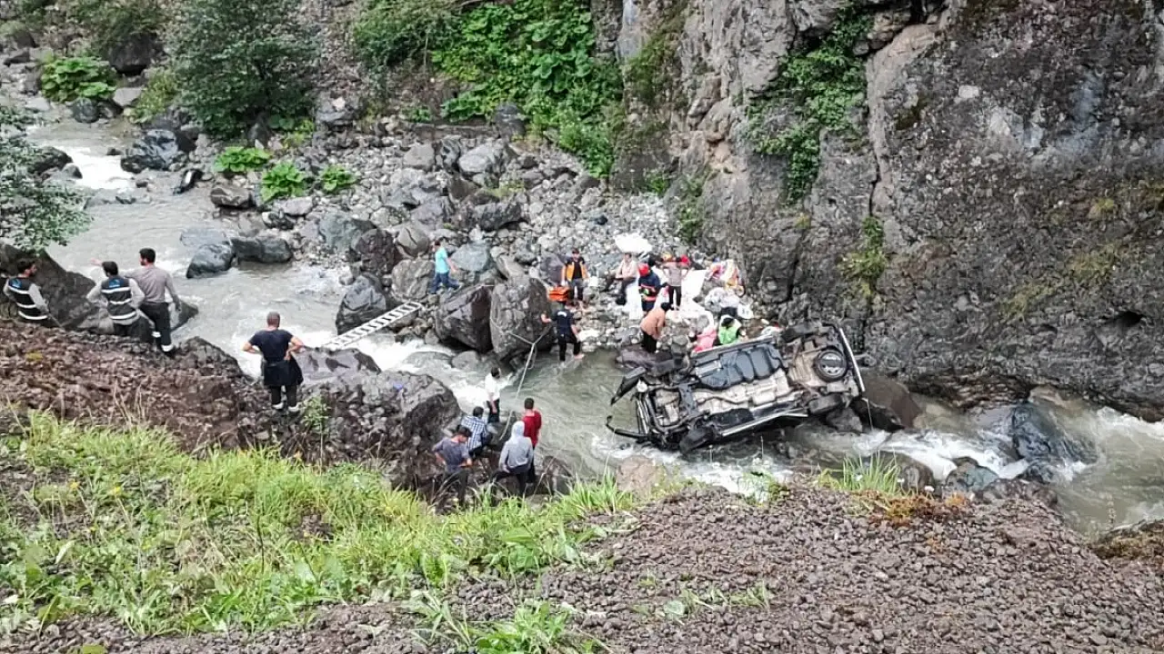 Trabzon'da araç dereye yuvarlandı: 6 yaralı