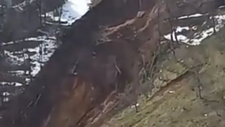 TRABZON'un Arsin ilçesinde, ani kar erimesiyle yamaçtaki arazide heyelan meydana gelirken, 2 katlı bina tahliye edildi.