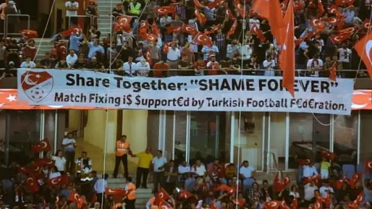 Trabzonsporlu taraftarların şike sürecine ithafen açtığı pankartta şu ifadeler yer alıyor.
