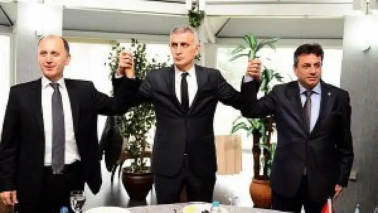 Trabzonspor Kulübü'nde olağan genel kurul öncesi başkan adayları İbrahim Hacıosmanoğlu, Muharrem Usta ile Celil Hekimoğlu bir araya geldi.