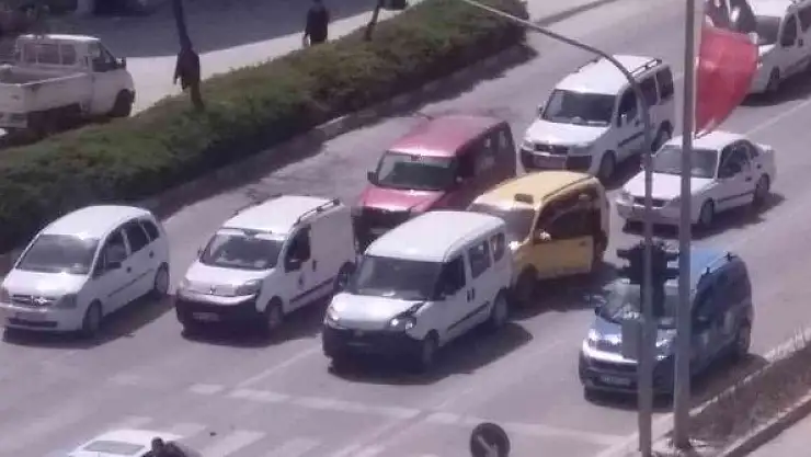 Trafik ışıklarında 3 aracın karıştığı kaza