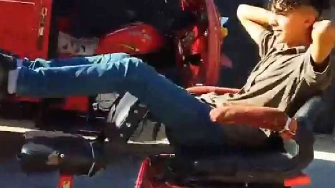 Trafik magandası ayağıyla motosiklet sürdü, o anlar kameraya yansıdı