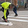 Trafik polisleri kendi yaya çizgilerini kendileri çizdiler