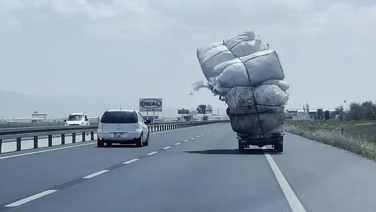 Olay, Aksaray - Adana Kara yolunun 1. kilometresinde yaşandı. Edinilen bilgiye göre, 68 MA 1039 plakalı kamyonete büyük çuvallarla yük yükleyen sürücü tek bir iple bağladığı o yükle karayoluna çıktı. Kamyonetin neredeyse 3 katı yük yüklenen kamyoneti seyir halinde gören sürücüler adeta şok geçirdi. Yürekleri ağza getiren kamyonet sürücüsü yükün sol tarafa kaymasına da aldırış etmeden adeta kazaya davetiye çıkarırcasına seyretmeye devam etti. Kameraya yansıyan görüntülerde devrilmesi an meselesi olan kamyonetin de yükle birlikte sol tarafa yattığı görülürken karayolundaki bu tehlikeli taşımacılık herkesi pes dedirtti.