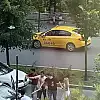 Esenyurt'ta bir maganda trafikte tartıştığı adama sopa, yumruk ve tekmelerle saldırdı.