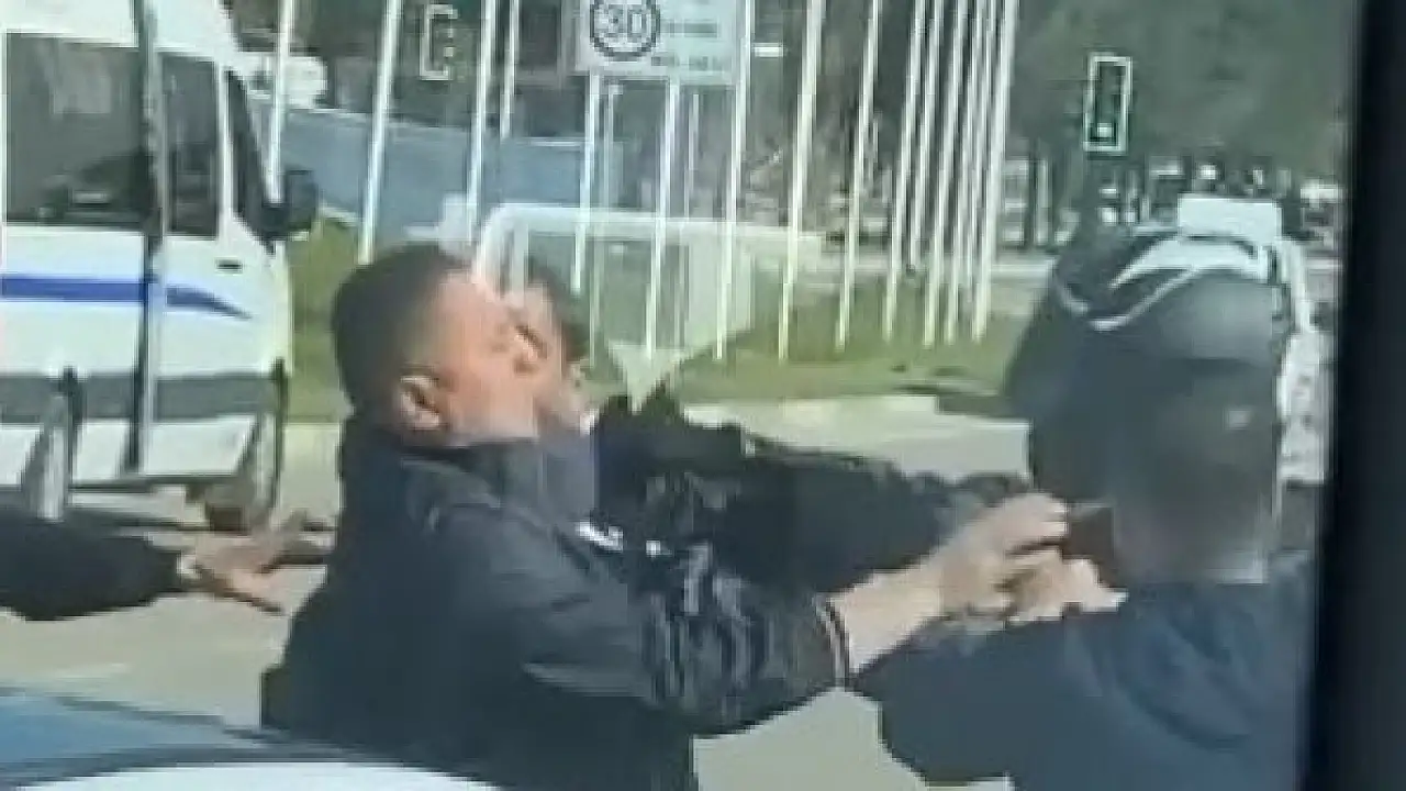 Bursa'da yol verme meselesi yüzünden tartışan iki sürücü trafik ışıklarında tekmeli yumruklu kavgaya tutuştu. O anlar başka bir vatandaş tarafından anbean kaydedildi.