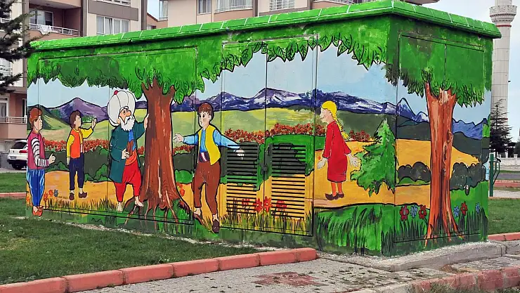 Konya’nın Akşehir İlçe Belediyesi, şehir merkezindeki elektrik trafolarını Nasreddin Hoca’nın fıkralarını konu alan resimlerle donattı. Akşehirli resim öğretmeni-ressam Aynur Yavuz tarafından çizilen resimler, trafoların bulunduğu alanlarda yaşayan vatandaşların da büyük beğenisini topladı.
