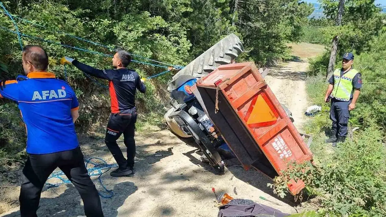 Bilecik'in Gölpazarı ilçesinde traktörün devrilmesi sonucu meydana gelen kazada sürücü hayatını kaybetti.