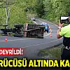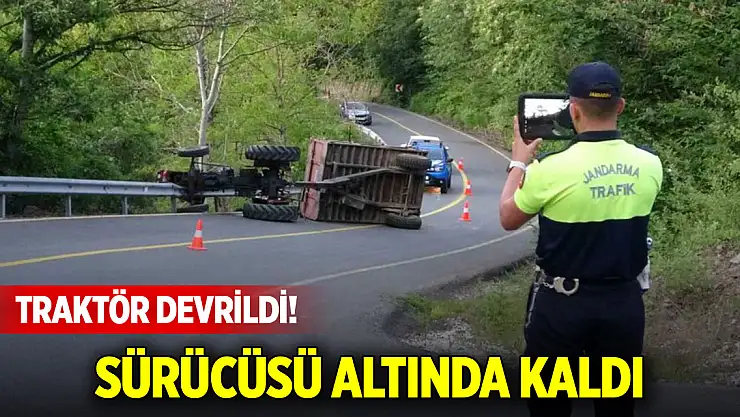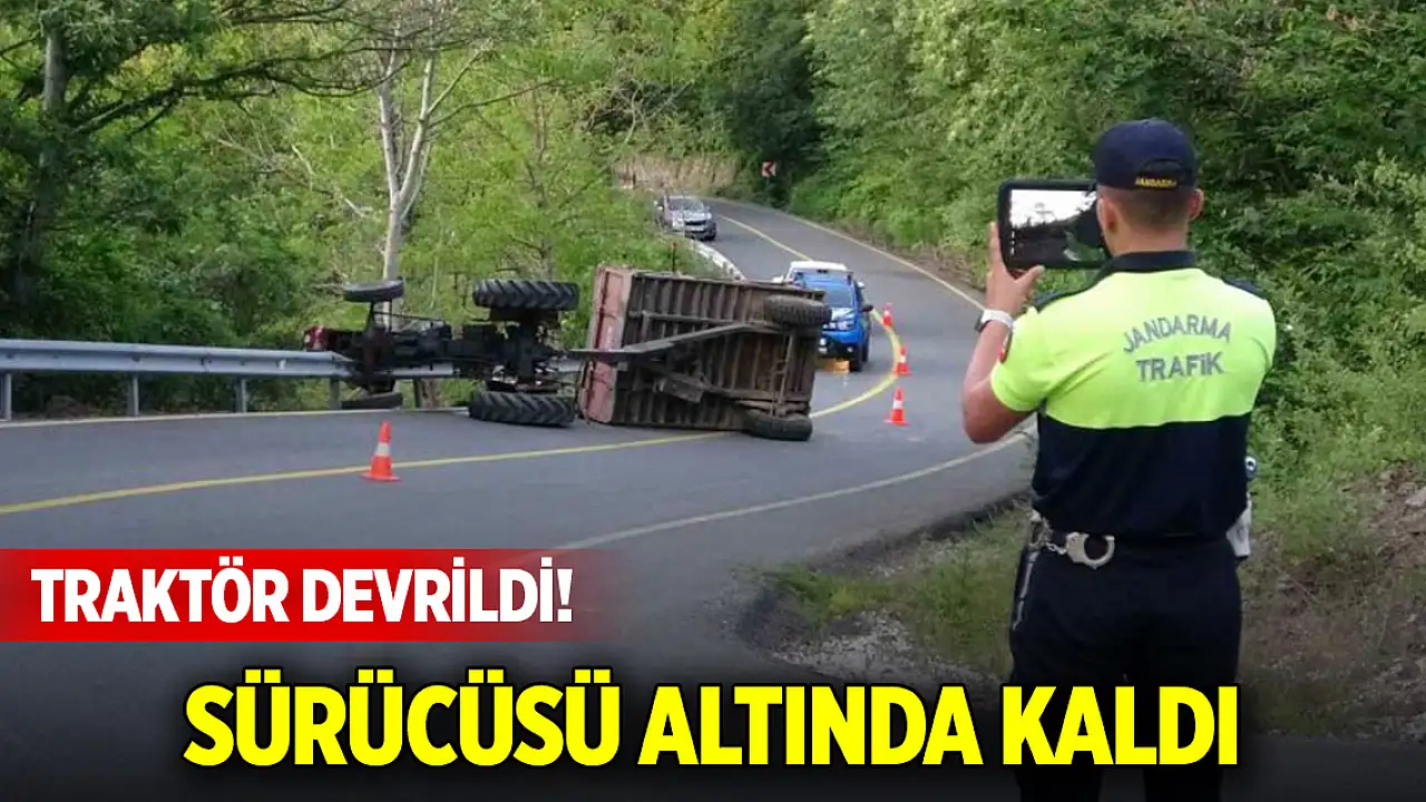 Sürücünün direksiyon hakimiyetini kaybettiği traktör yan yattı.