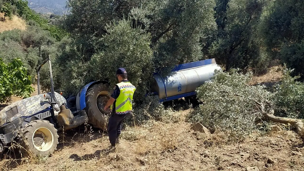 Kaza, saat 12.00 sıralarında kırsal Arpadere Mahallesi Ayrancı mevkinde meydana geldi. Tarlasından dönen Özcan Sugötüren, arkasında römork su tankeri takılı 09 UP 320 plakalı traktörün direksiyon hakimiyetini yokuştan inerken kaybetti. Kontrolden çıkan traktör, şarampole yuvarlandı. Kazada bir zeytin ağacına çarparak duran traktörün sürücüsü Özcan Sugötüren yaralanırken, yanındaki çamurluğun üzerinde yolculuk yapan eşi Gülsüm Sugötüren, yaşamını yitirdi. Yaralanan sürücü Aydın Devlet Hastanesi'nde tedaviye alınırken, eşinin cenazesi ise aynı hastanenin morguna kaldırıldı. Jandarma kazayla ilgili soruşturma başlattı. (DHA)