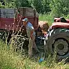Bilecik'te saman balyası yüklü traktörün kaza yapması sonucunda şoför devrilen römorkun altında kalarak can verirken, araçta bulunan 1 yolcu hafif yaralandı.