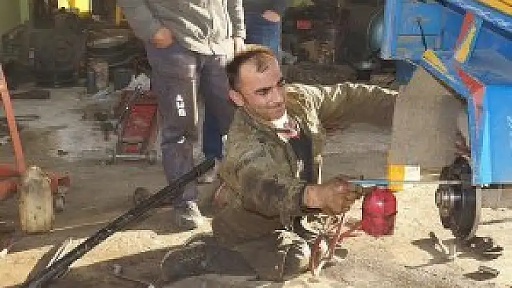 Gülören Mahallesi'nde kendine ait iş yerinde traktör ve lastik tamirciliği yapan Mustafa Özcan, AA muhabirine yaptığı açıklamada, bir yaşında geçirdiği hastalık sonucu bedensel engelli olduğunu söyledi.