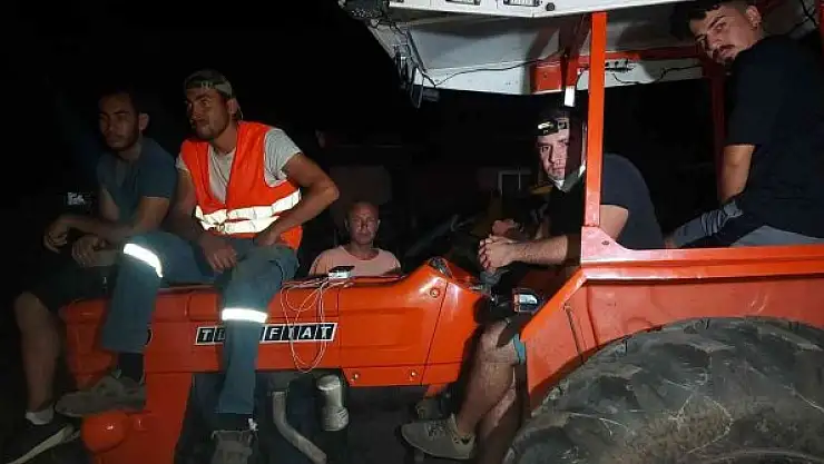 Muğla'nın Marmaris ilçesinde devam eden orman yangınında Hisarönü Mahallesi'nin gençleri, alevlerin evlerine sıçramaması için traktör üstünde yangın nöbeti tutuyor.