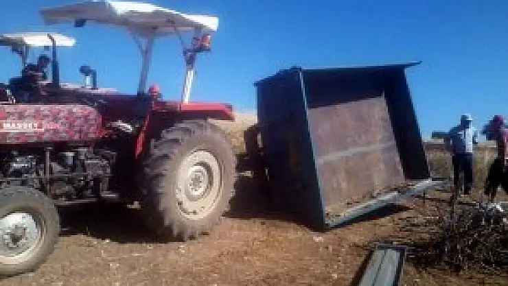 Beyşehir'de tarım işçilerini taşıyan traktörün römorkunun yan yatması sonucu 12 kişi yaralandı.