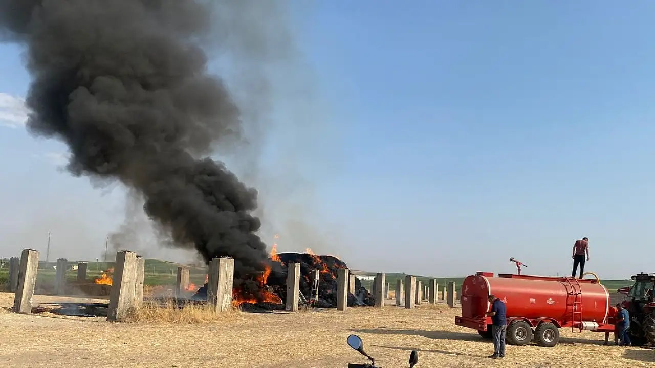 Traktörde çıkan yangın 150 ton saman balyasını küle çevirdi