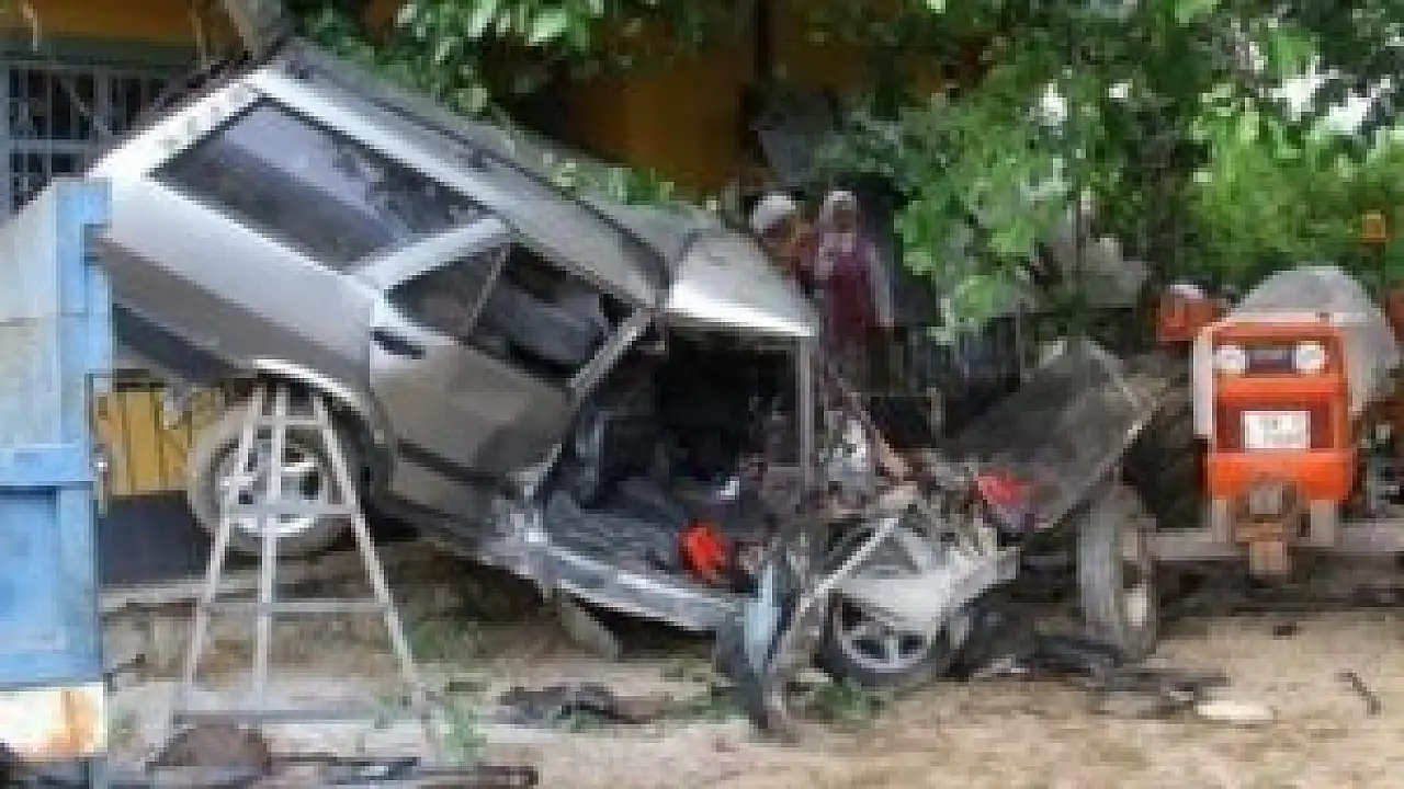 Traktöre çarpan araç demir korkuluklarda asılı kaldı