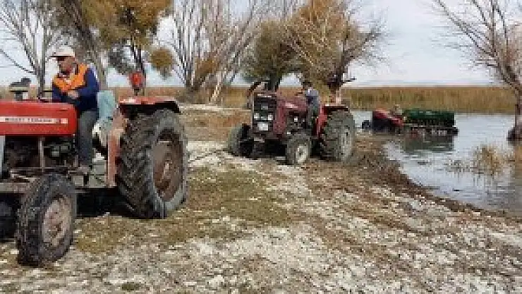 Konya'nın Beyşehir ilçesinde, saplandığı göl sularında mahsur kalan traktör, traktörler tarafından çekilerek kurtarıldı.