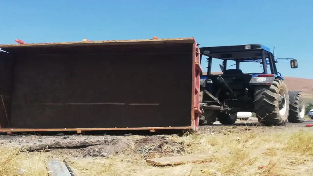 Sivas'ın Kangal ilçesinde mevsimlik tarım işçilerini taşıyan traktörün römorkunun devrilmesi sonucu 23 kişi hafif yaralandı.