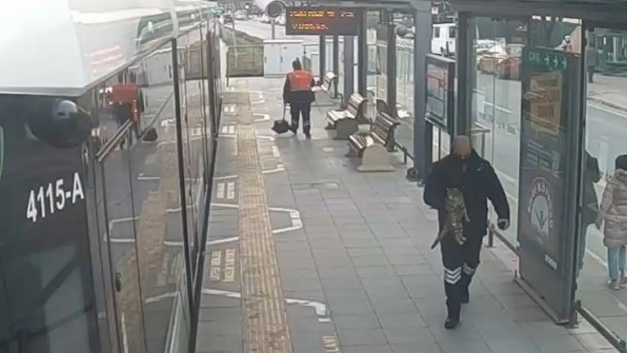 İzmit'te, kedinin tramvayın altına girdiğini fark eden güvenlik görevlisi Rıfat Demir, acil durum butonuna basıp, aracın hareket etmesini engelleyerek, hayvanı kurtardı. Bu anlar, güvenlik kamerasına anbean yansıdı.