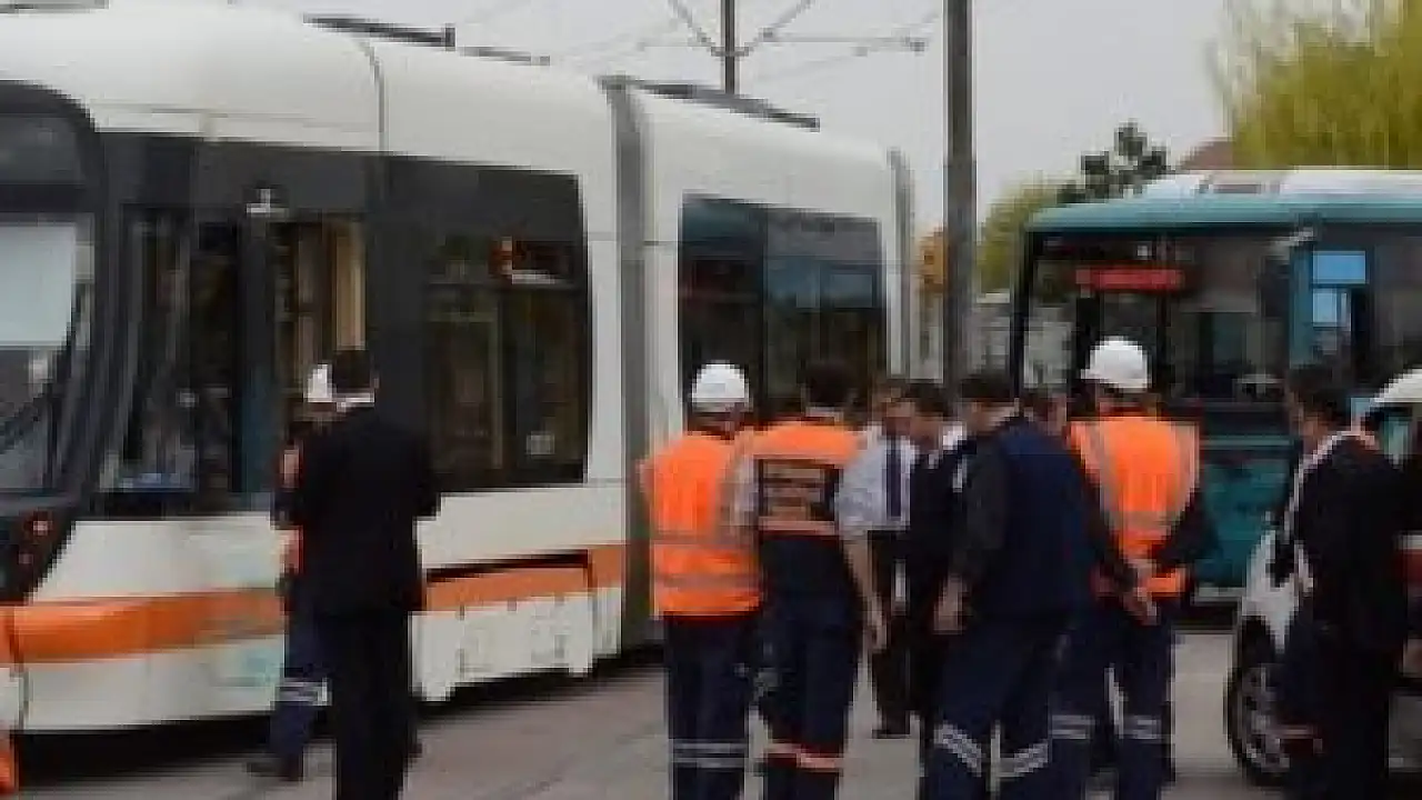 Tramvay belediye otobüsüyle çarpıştı!