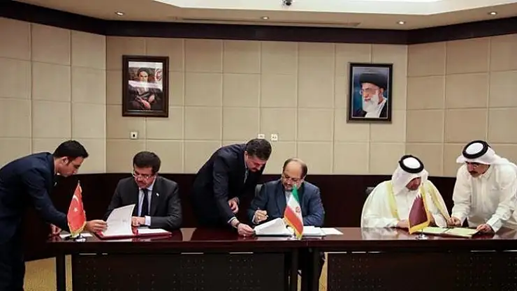 L’accord a été signé par Nihat Zeybekci, ministre turc de l’Economie, Mohammad Shariatmadari, ministre iranien de l’Industrie et du Commerce et Ahmed Ben Jassem Ben Mohammed al-Thani, ministre qatari de l’Economie et du Commerce.