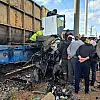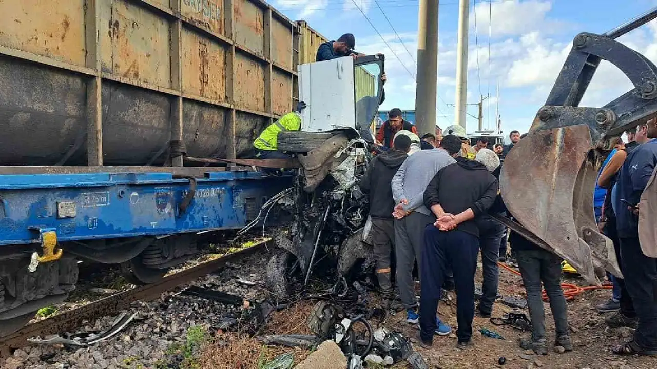 Trenin çarptığı araç hurdaya döndü