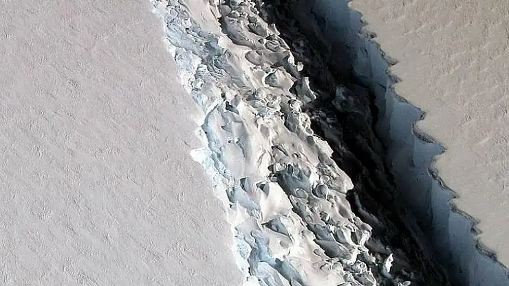 Trilyon tonluk buz dağının kopmasıyla Larsen C buz sahanlığının büyüklüğünün yüzde 12 azaldığı belirtildi.