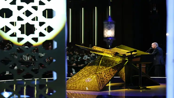 Törende konuşan Cumhurbaşkanı Erdoğan , "Ülkemizin dört bir yanında milyonlarca insanımızın gönlünü bu yarışma vesilesi ile Kur’an-ı Kerim sıcaklığı ile ısıtanlara ben teşekkür ederim" dedi.