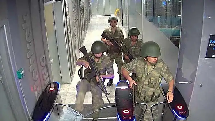 Fotoğrafta, şüpheli bir kısım askerin sivil kıyafet giyerek kapıdan kaçışları görülüyor.